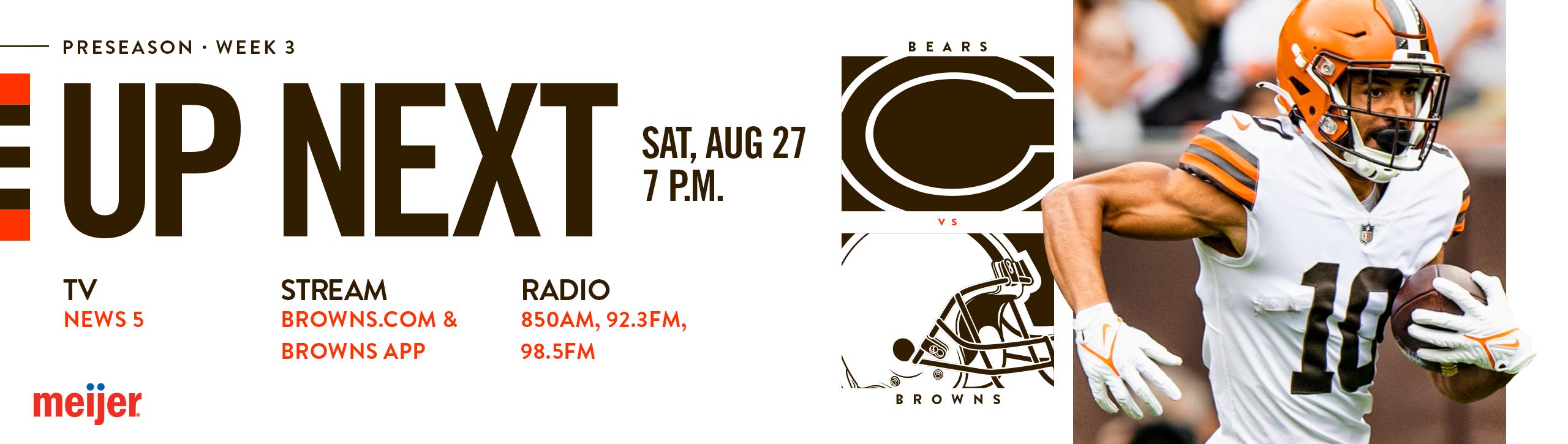 Watch on the Apple TV app across your devices. CLEVELAND Ohio The Browns wrap up the preseason Saturday night when they host the Chicago Bears. The best place for Browns gameday information including live scores stats highlights and more.